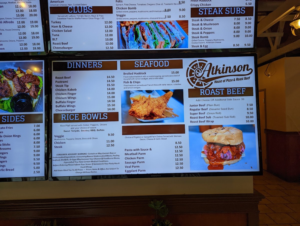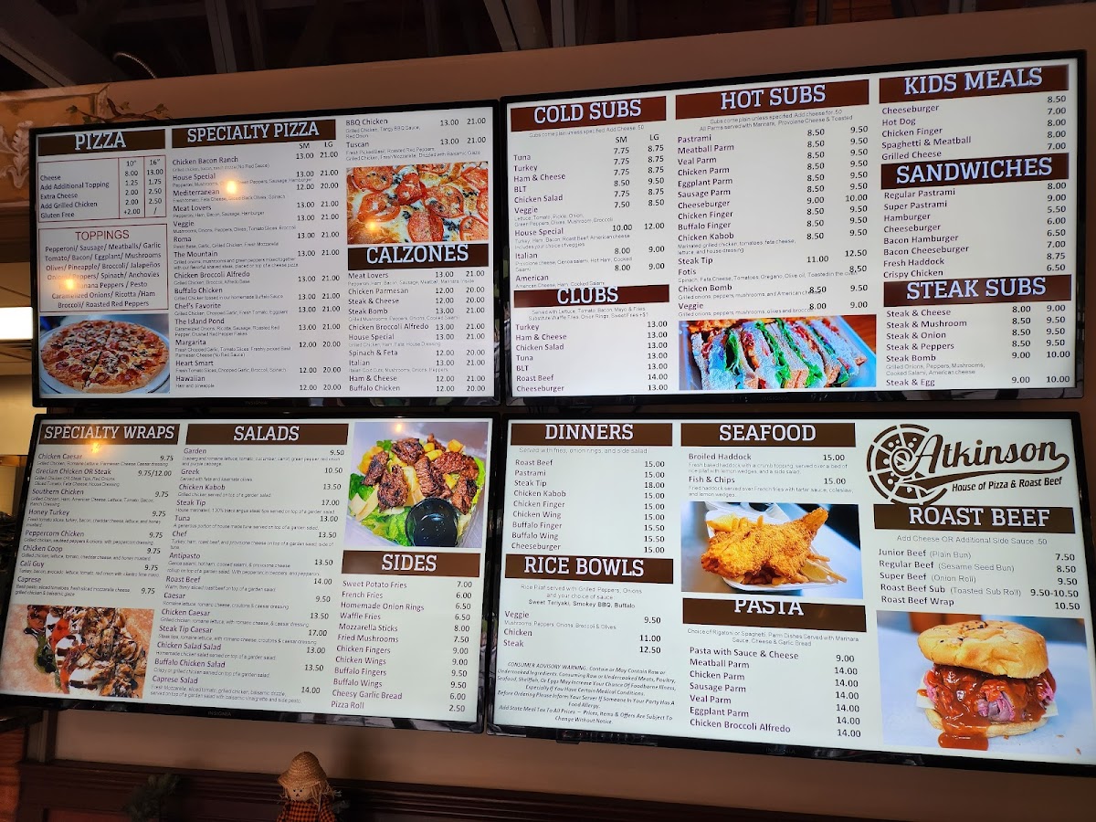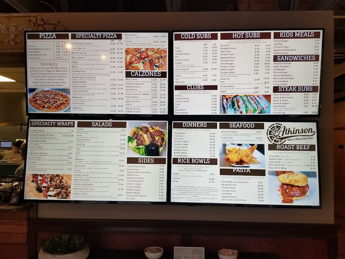 Atkinson House of Pizza and Roast Beef Menu